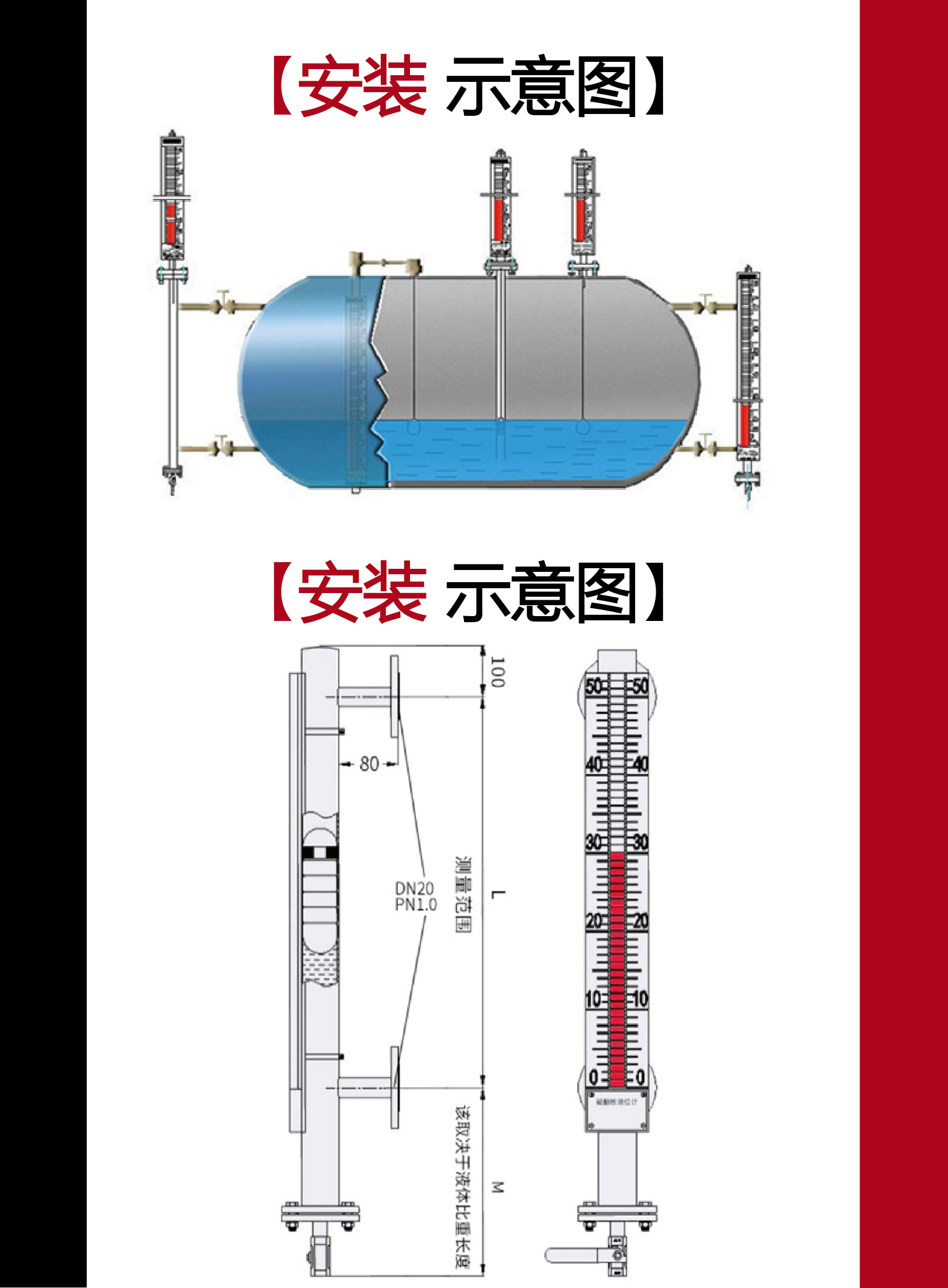 UHZ磁性翻板液位水位計(jì)儀器遠(yuǎn)傳側(cè)裝頂裝不銹鋼內(nèi)襯防腐蝕浮球